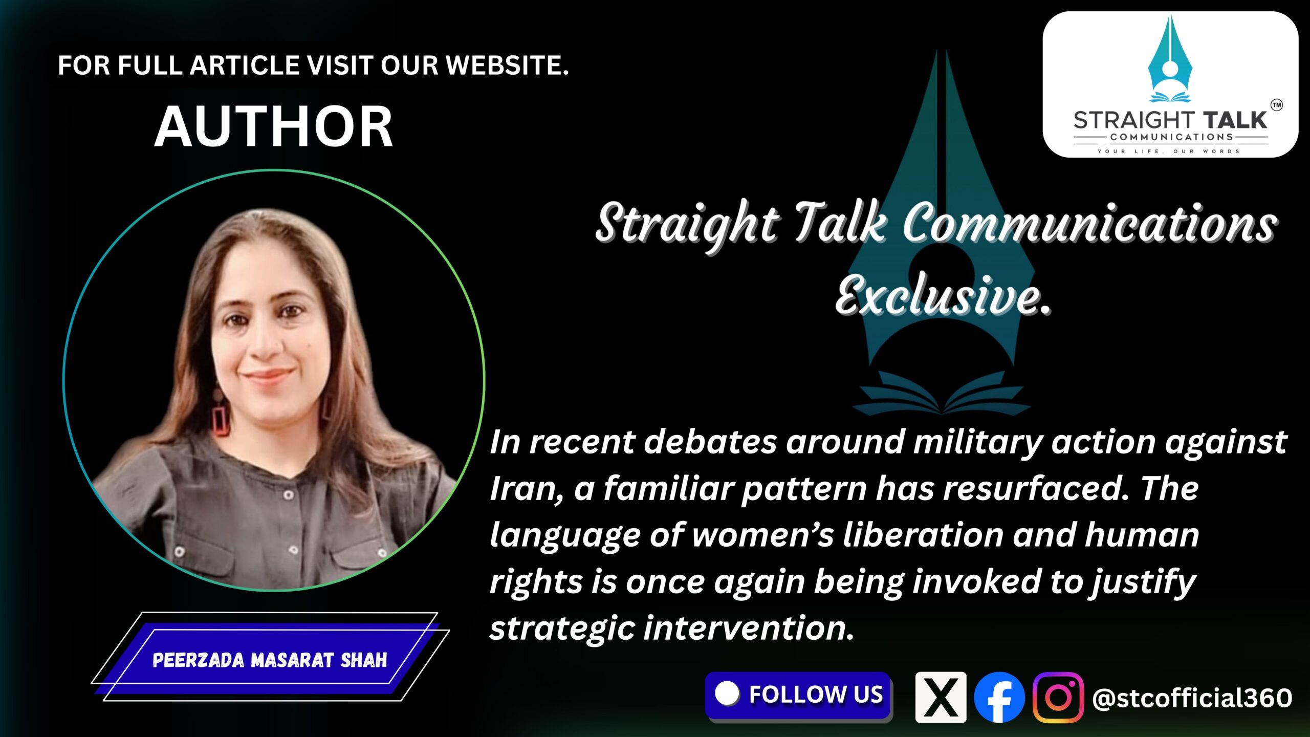Peerzada Masarat Shah In recent debates around military action against Iran, a familiar pattern has resurfaced. The language of women’s liberation and human rights is once again being invoked to justify strategic intervention. At first glance, it sounds morally compelling. But history urges caution. When the vocabulary of empowerment merges with military ambition, the outcome…