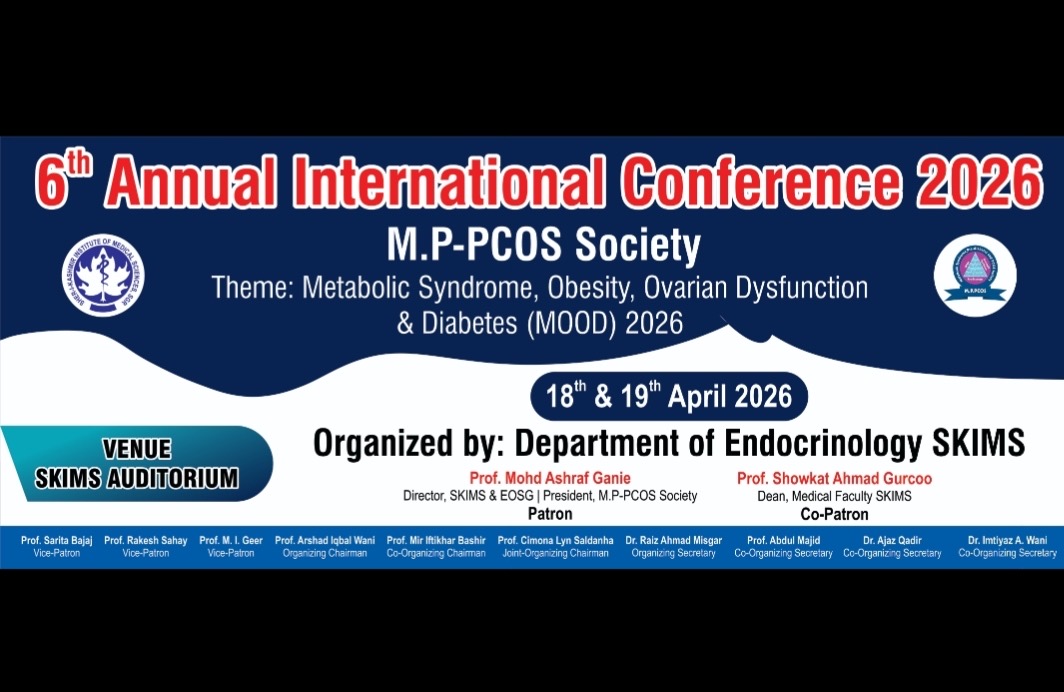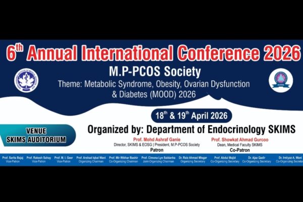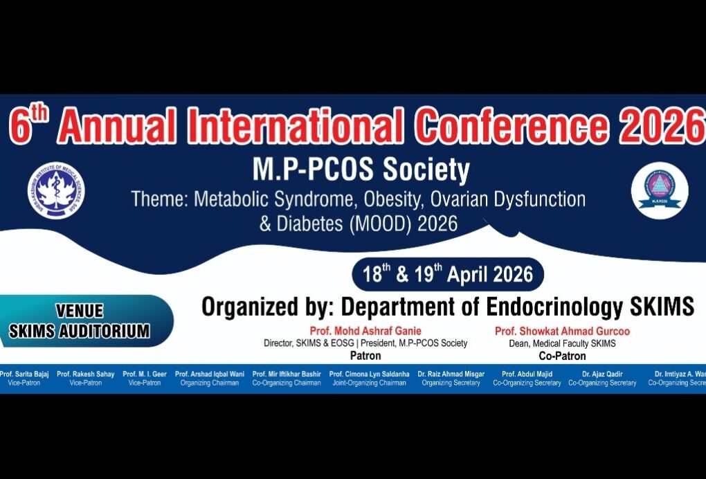 STC NEWS DESKSRINAGAR, APRIL 16 (STC): A two-day International Conference of the MP-PCOS Society is being held on April 18 at the Sher-i-Kashmir Institute of Medical Sciences (SKIMS) Auditorium. The Department of Endocrinology at the Institute is organising the Conference.A statement of the SKIMS states that the conference is being held under the guidance of…