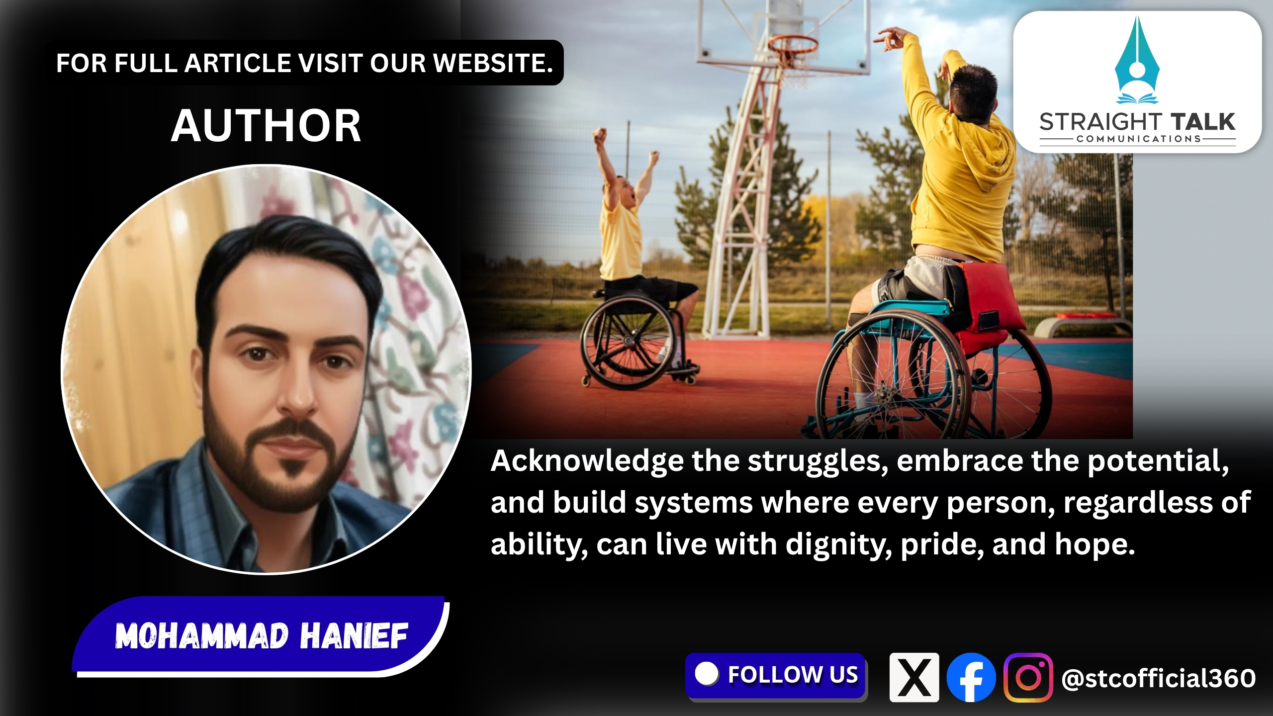 The International Day of Persons with Disabilities is more than an observance; it is a judgement of a society’s values. A truly progressive, compassionate, and stable society is one where no individual is left behind — where disability does not mean exclusion, dependence, or silence.