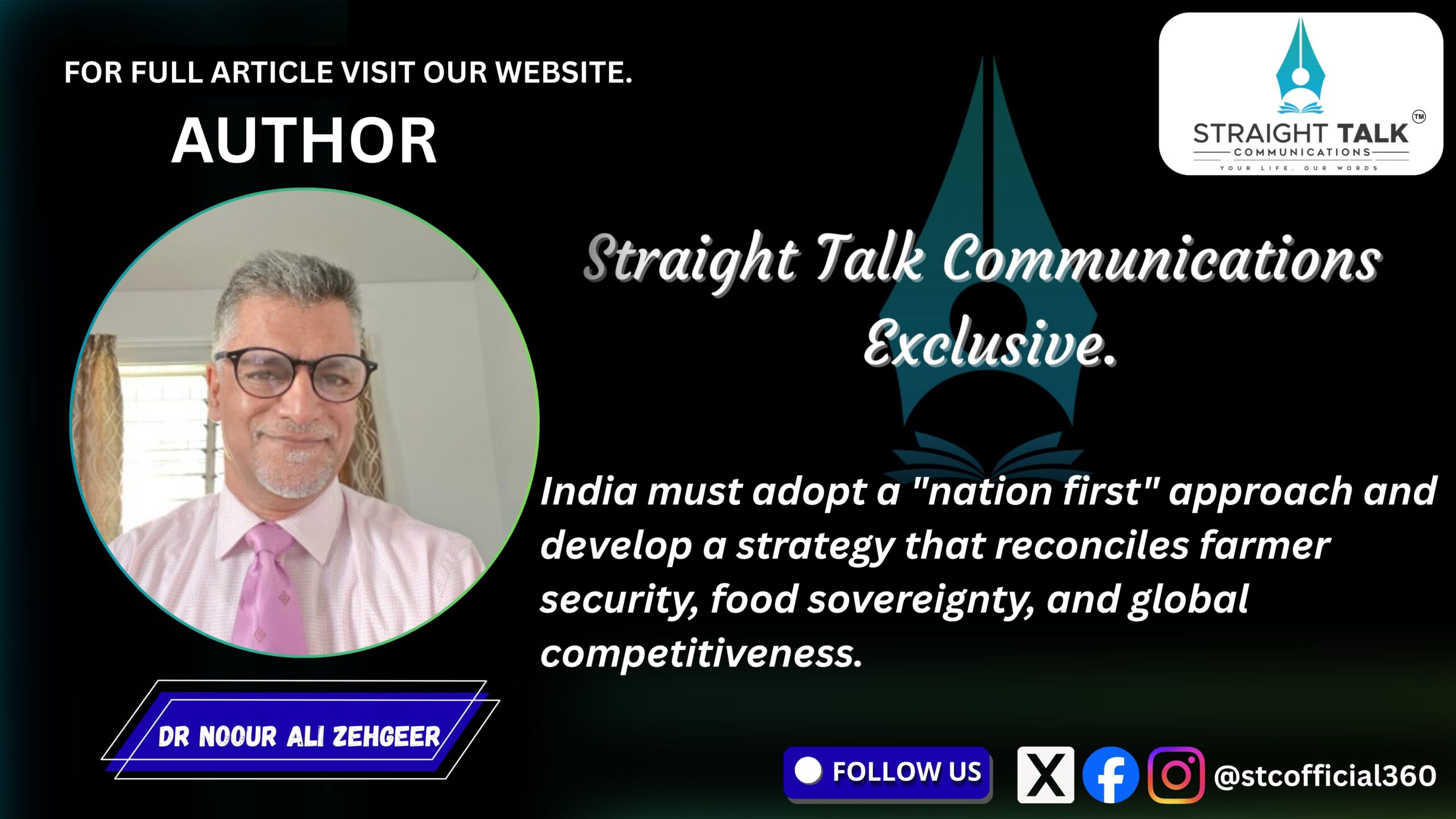 India must adopt a “nation first” approach and develop a strategy that reconciles farmer security, food sovereignty, and global competitiveness.