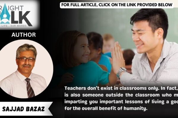 Teachers don’t exist in classrooms only. In fact, there is also someone outside the classroom who may be imparting you important lessons of living a good life for the overall benefit of humanity. Sajjad Bazaz In a routine morning glance at my WhatsApp messages, I came across a message from one of my colleagues at…
