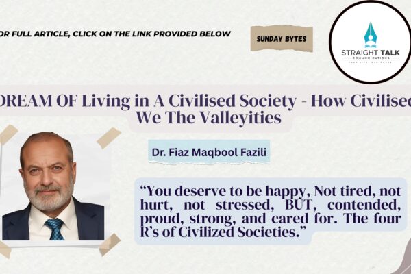 “You deserve to be happy, Not tired, not hurt, not stressed, BUT, contended, proud, strong, and cared for. The four R’s of Civilized Societies.” Dr. Fiaz Maqbool FaziliWhy must we try to shape every dream? This is a story of something I did that I’m not proud of. The quest for a civilized society is…