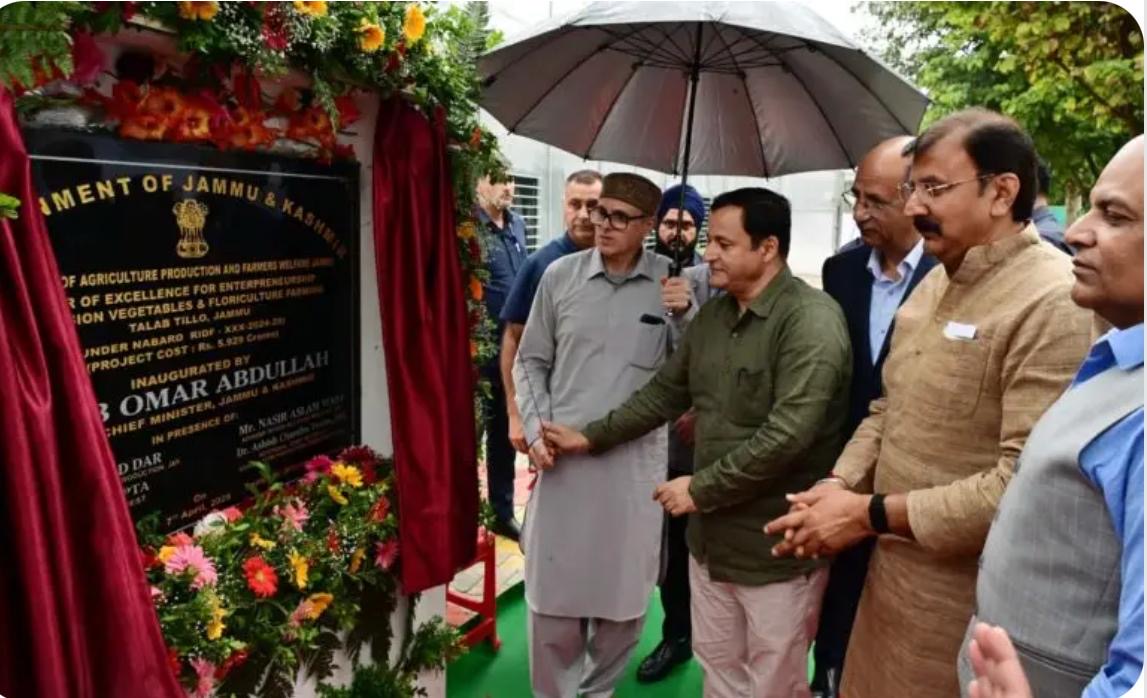 : Jammu and Kashmir Chief Minister Omar Abdullah today inaugurated the Centre of Excellence for Entrepreneurship in Precision Vegetable and Floriculture Farming at Talab Tillo, developed under NABARD at a project cost of ₹5.929 crore. He emphasized that the establishment of Centres of Excellence in agriculture and allied sectors is aimed at providing high-quality plant material and seeds to farmers, enabling them to significantly enhance their earnings.