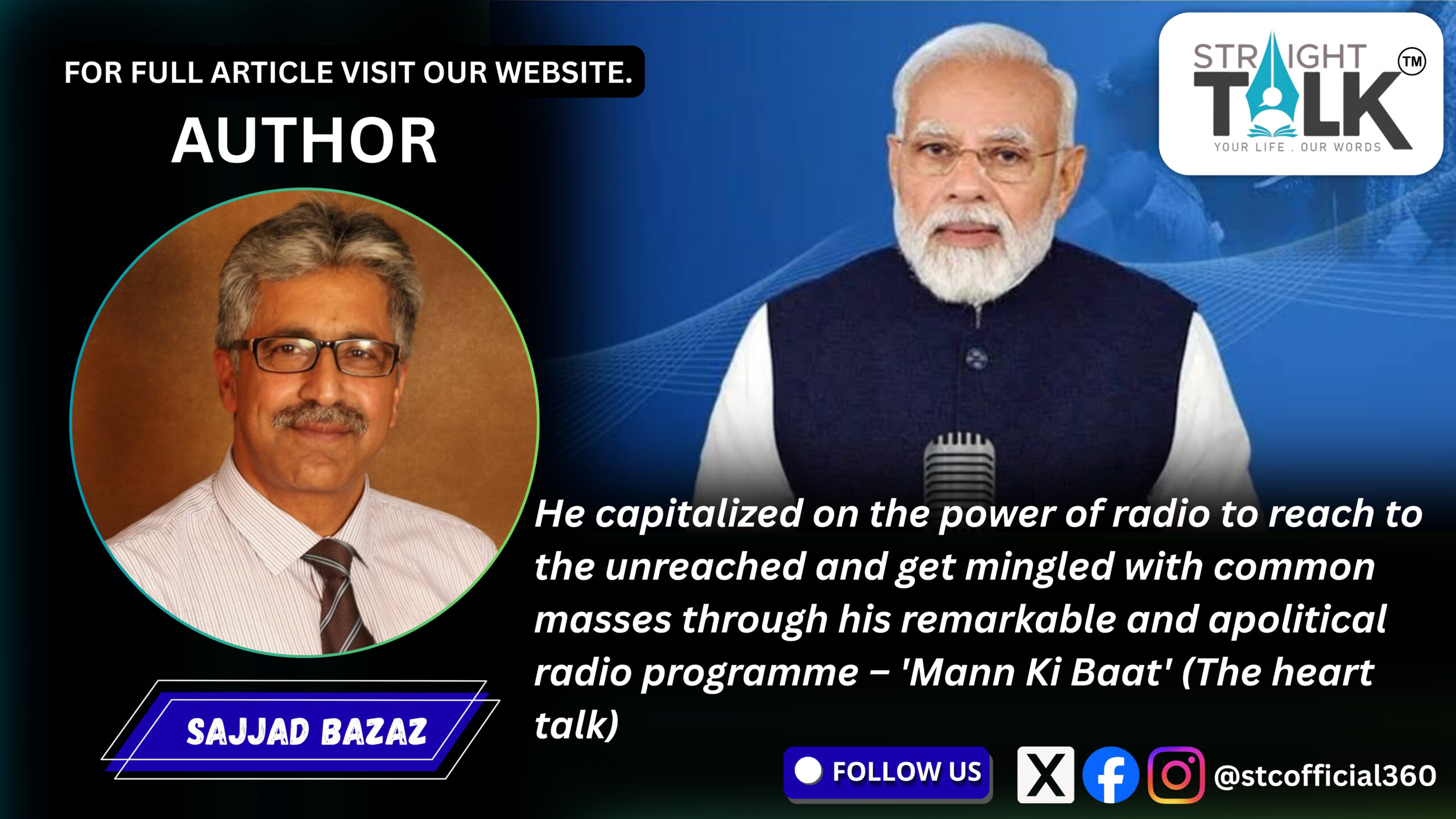 Unarguably, the PM Narendra Modi enjoys mass support of the Indian public of all caste, creed and colour as he has popularly emerged as the only “Peoples’ Prime Minister” in the history of independent India. There may be scores of reasons to count and attribute them to Modi’s popularity. But, politics apart, I count his direct connection with the masses at the grass root level even in remotest geographical locations of the country as one of the main reasons for his “Peoples’ Prime Minister” image. In an unmatched strategic move, he capitalized on the power of radio to reach to the unreached and get mingled with common masses through his remarkable and apolitical radio programme – ‘Mann Ki Baat’ (The heart talk). Indeed, he built the chemistry of social strength, culture and other social values in a sustained manner through this programme, and earned the respect of people to whom he shared his ‘Mann Ki Baat’.
