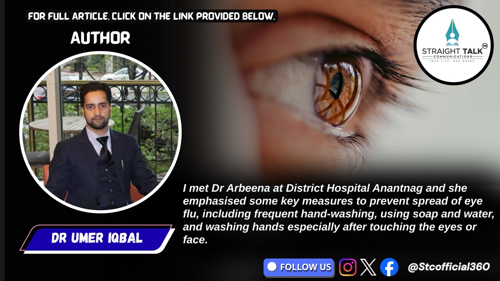 The current spike in eye flu cases in Kashmir demands attentive public health behaviour: good hygiene, avoiding sharing personal items, and seeking medical advice when needed. While most cases will resolve without serious complications, preventive care is essential to prevent spread and avoid more severe eye problems.