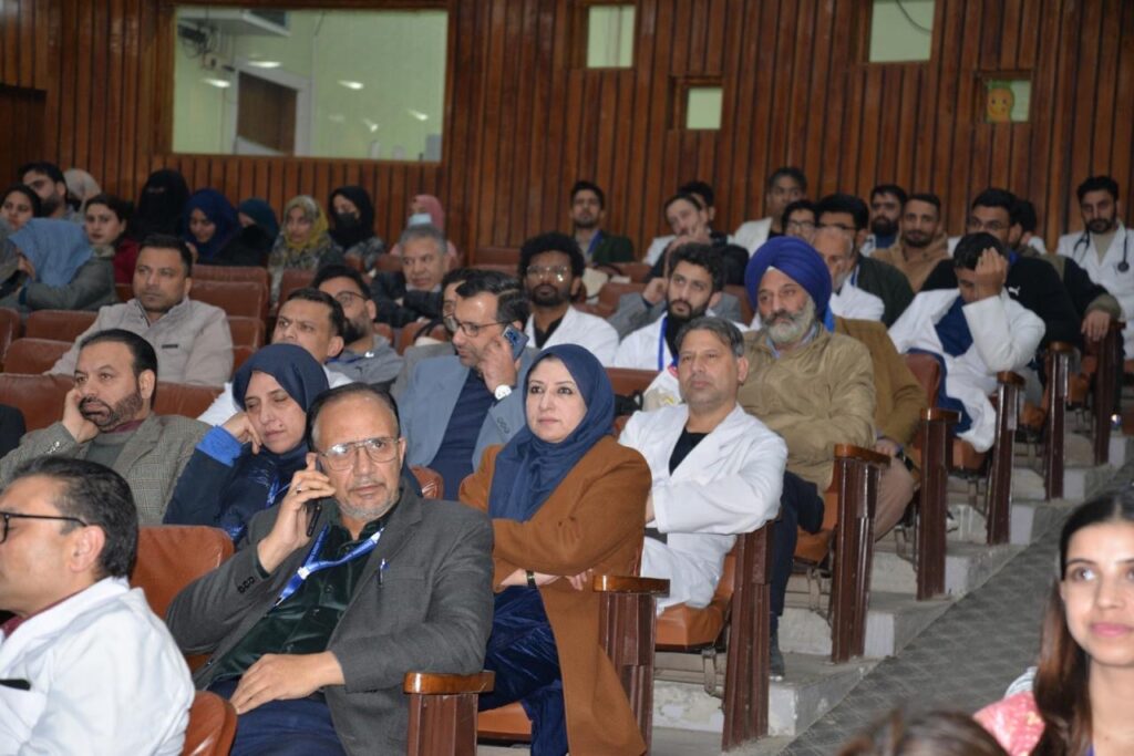 Prof. Mishra delivered an insightful lecture focusing on the current and future landscape of Endocrine Surgery. In his address, he praised Director SKIMS, Prof. M. Ashraf Ganie, for his vision of diversification, creation of subspecialities, and emphasis on strengthening the research ecosystem at SKIMS. He underlined that impactful research must prioritise local health issues, highlighting how scientific work on conditions like iron deficiency and ascariasis enabled large-scale eradication of these problems.