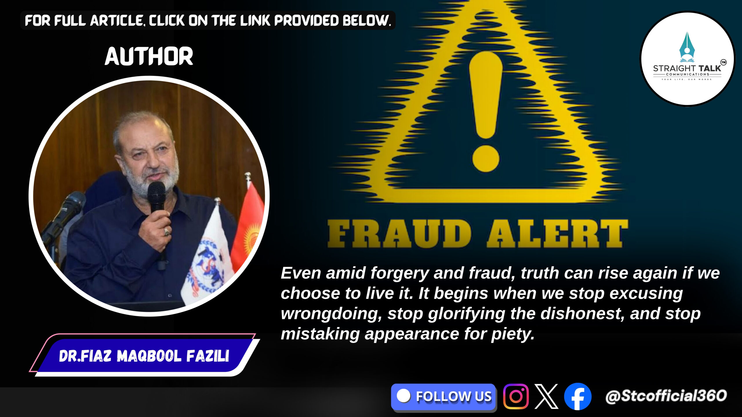 (Straight Talk Communications exclusive. Author is a medical doctor and social commentator who writes columns highlighting social wrongs and public concerns. He can be reached at drfiazfazili@gmail.com)