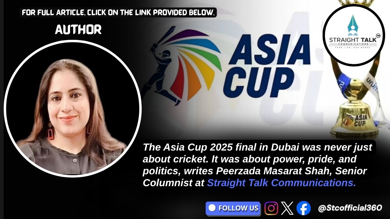 The Asia Cup 2025 final in Dubai was never just about cricket. It was about power, pride, and politics, writes Peerzada Masarat Shah, Senior Columnist at Straight Talk Communications.